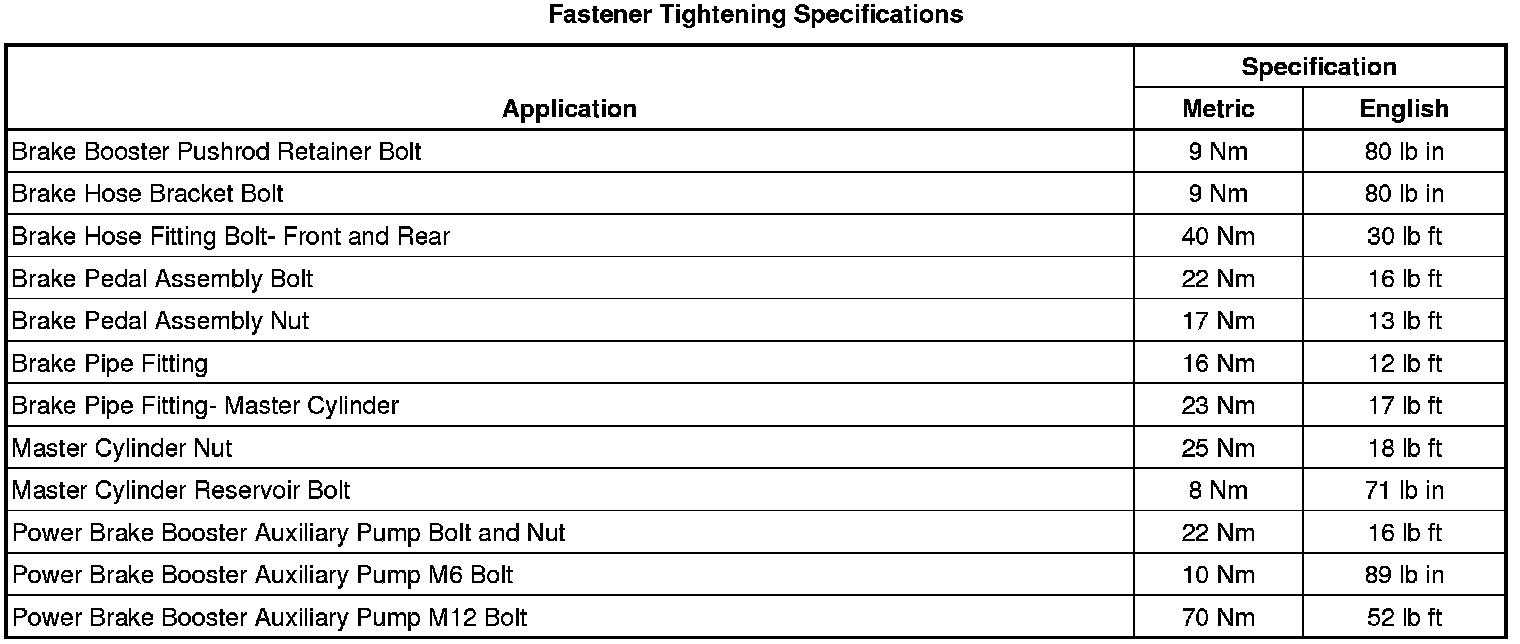 Fastener Tightening Specifications
