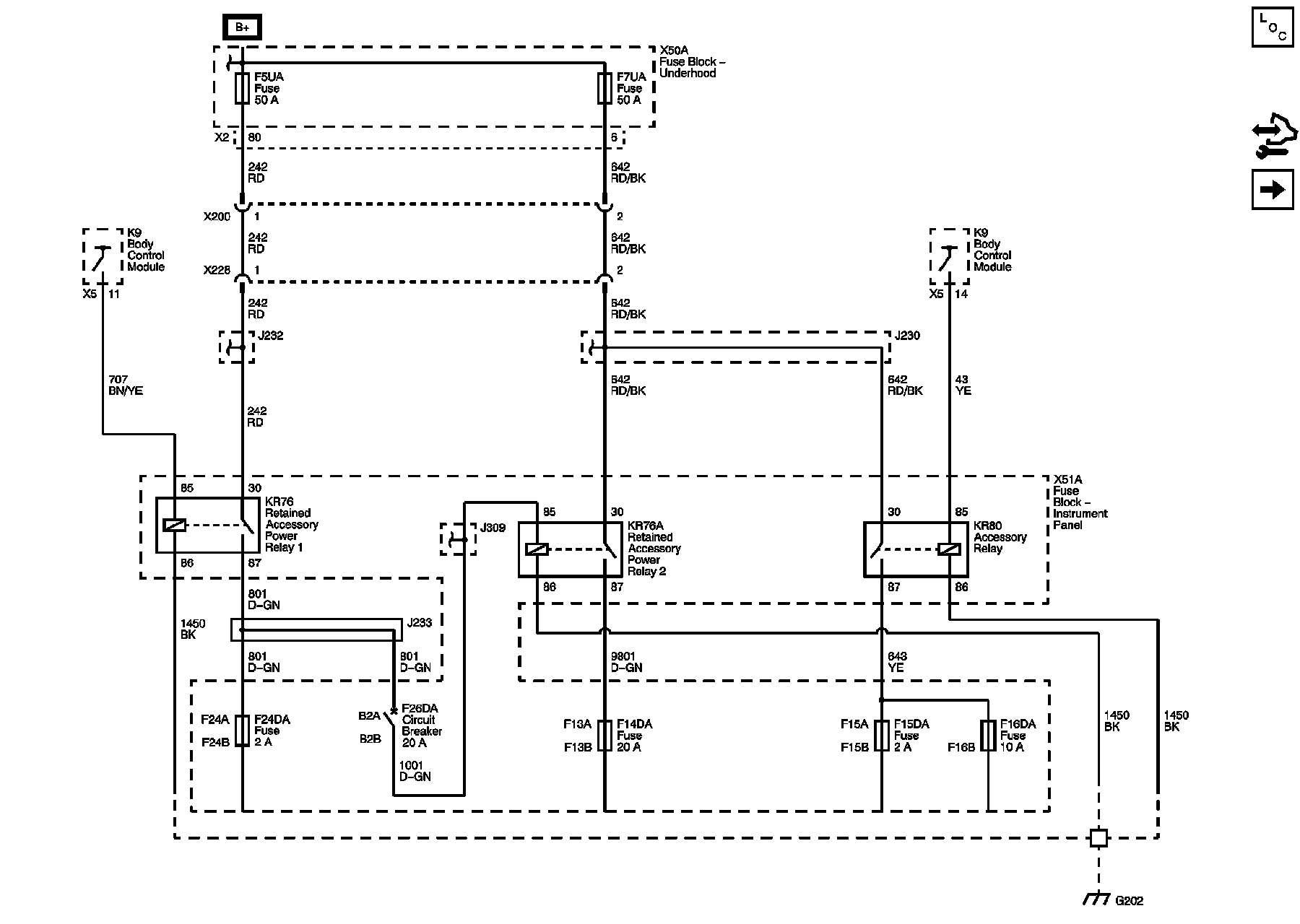 K76 Retained Accessory Power Relay 1, KR76A Retained Accessory Power Relay 2, and KR80 Accessory Power Relay