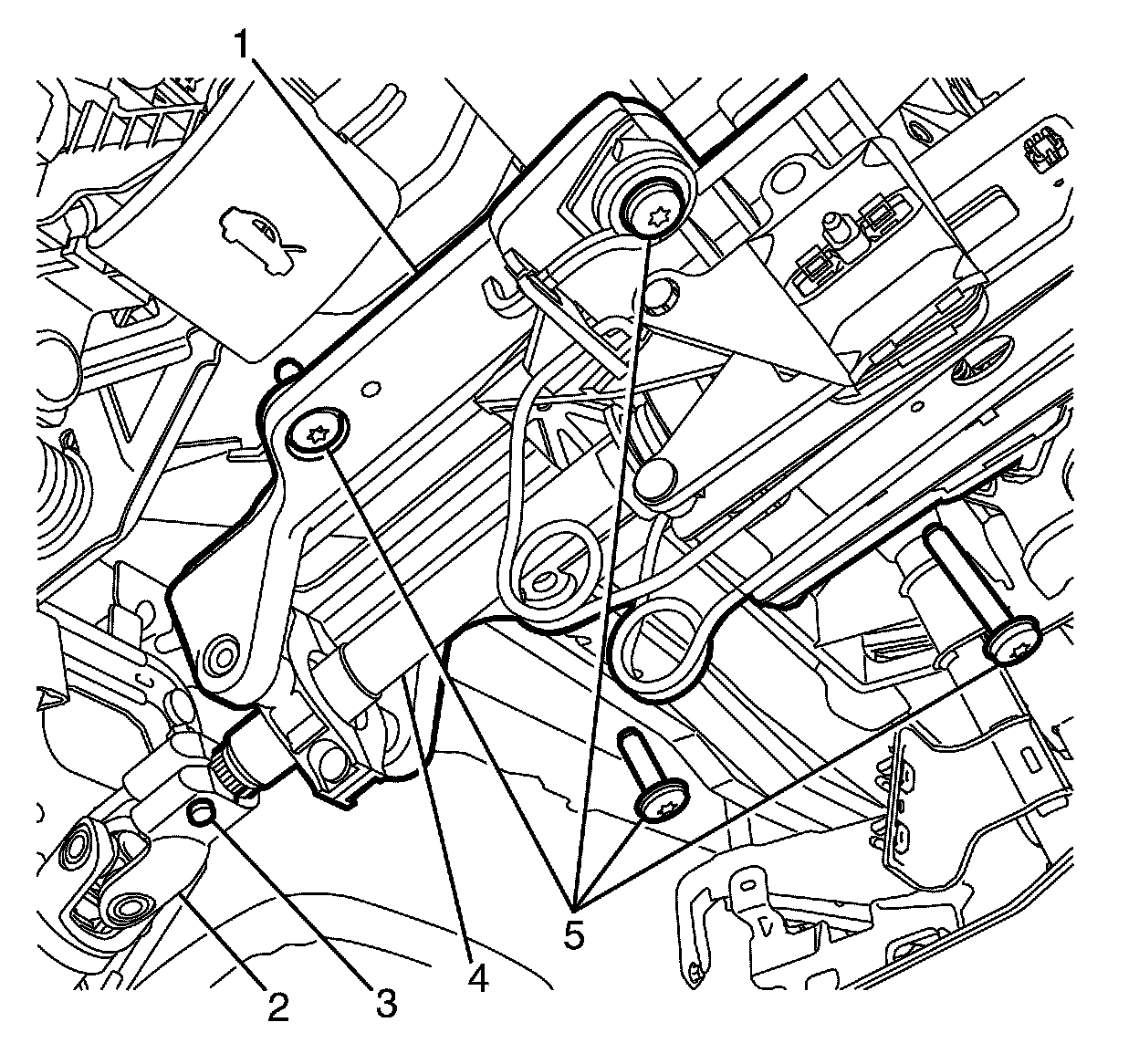 4. Install the 4 NEW steering column assembly to body retaining bolts (5) and tighten to 22 Nm (16 lb ft).