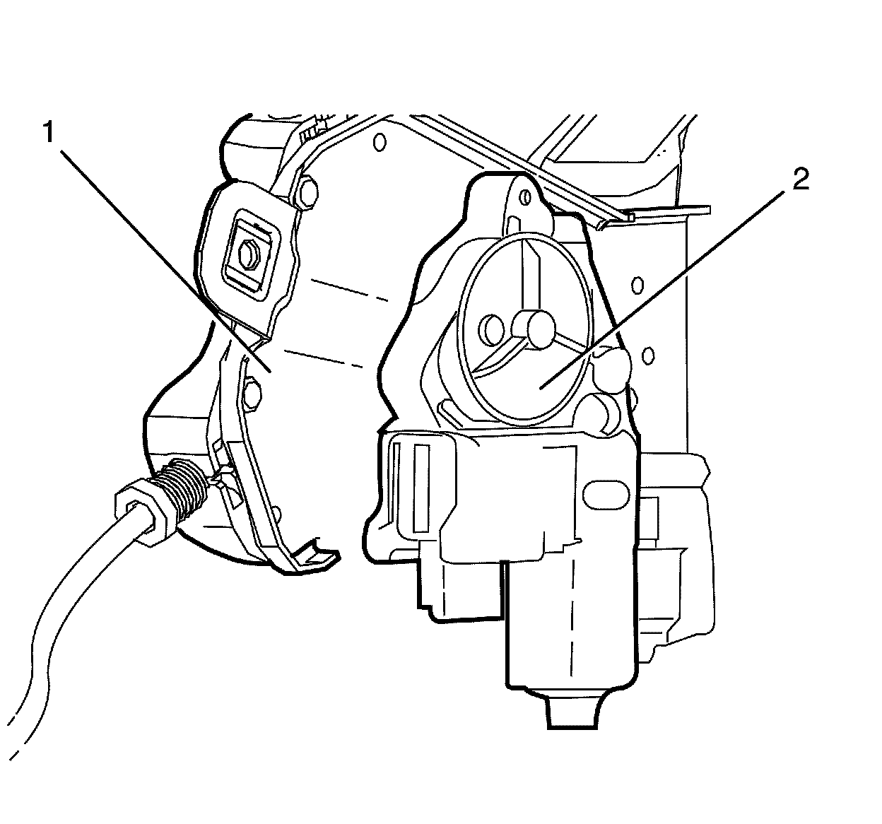 6. Remove the window regulator motor (2) from the window regulator (1).
