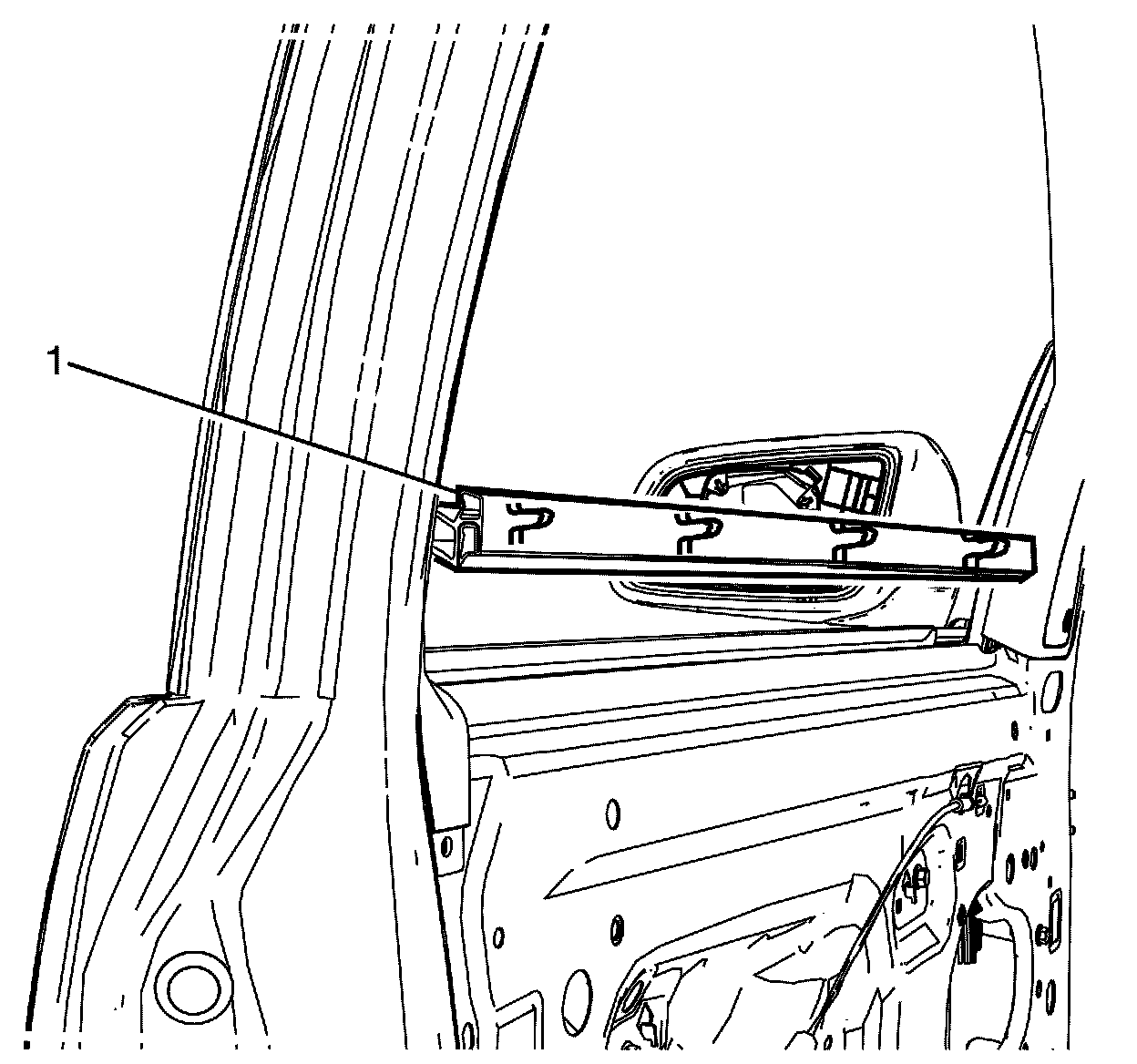 1. Install the window inner sealing strip (1).