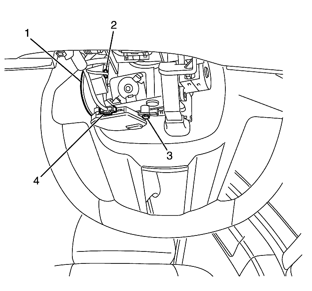 2. Install the TDM to steering column assembly retaining screw (3).