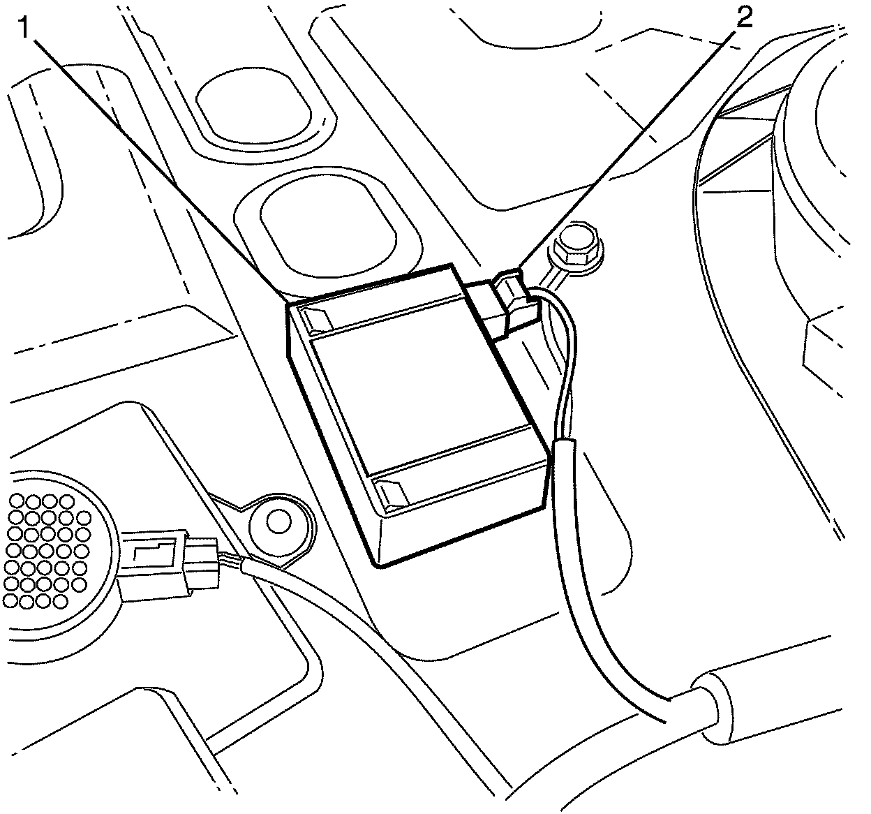 2. Connect the RFA (1) electrical connector (2).