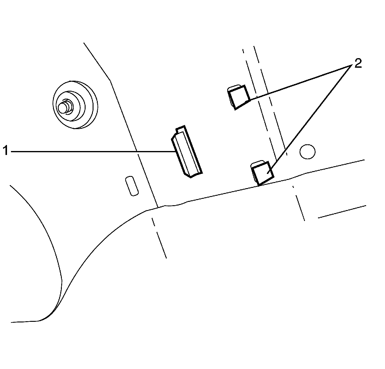 1. Install the RFA by inserting the retaining tang (1) first and snap fitting the other two retaining tangs (2) listen for an audible click to confirm fitting.