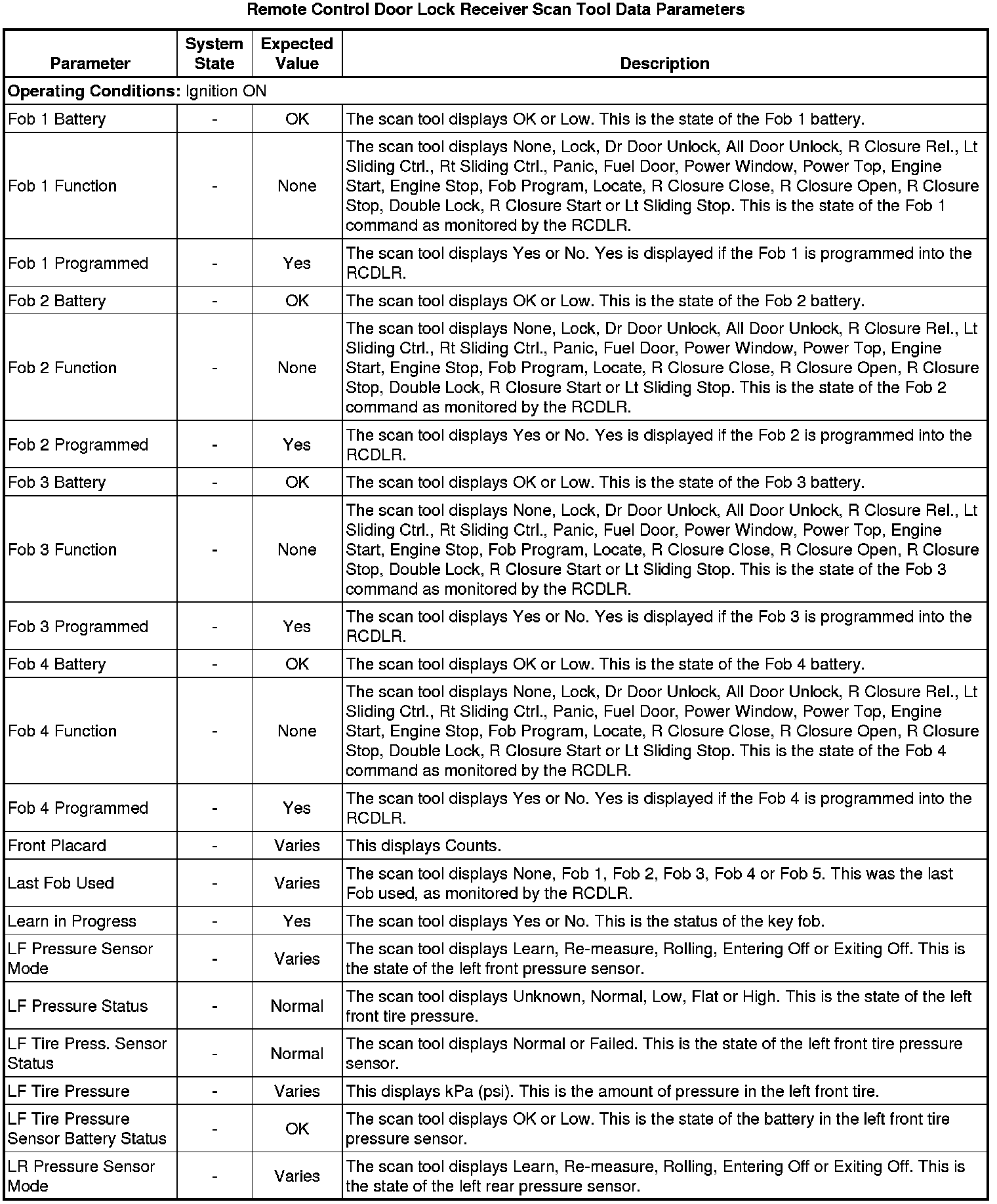 Door Lock Receiver Scan Tool Information