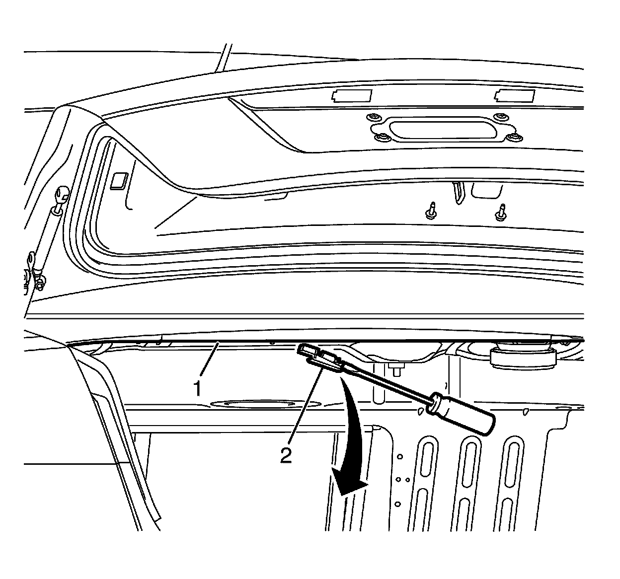 3. Remove the rear compartment lamp (2) by prizing the lamp from the rear shelf (1).