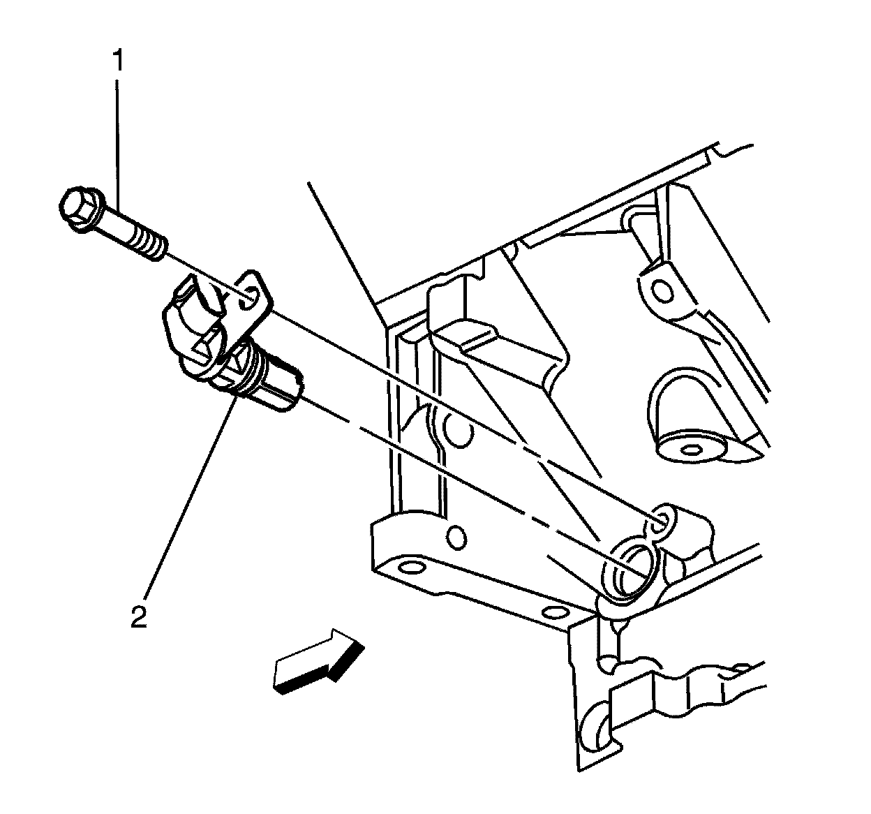 2. Install the CKP sensor to engine block retaining bolt (1) and tighten to 25 Nm (18 lb ft).