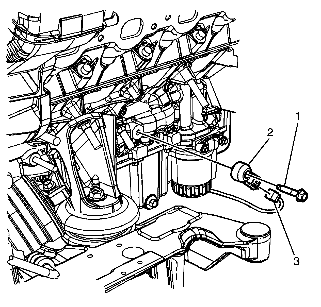 1. Connect the engine wiring harness (3) to the knock sensor (2).