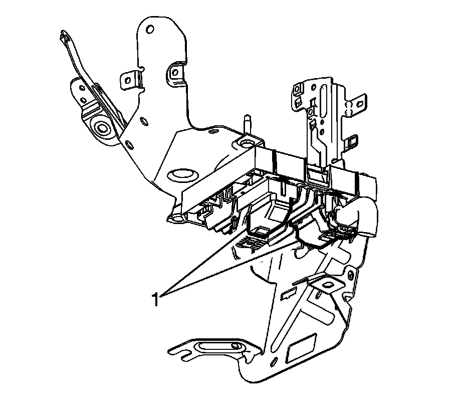 4. Remove the ECM bracket fasteners (1).