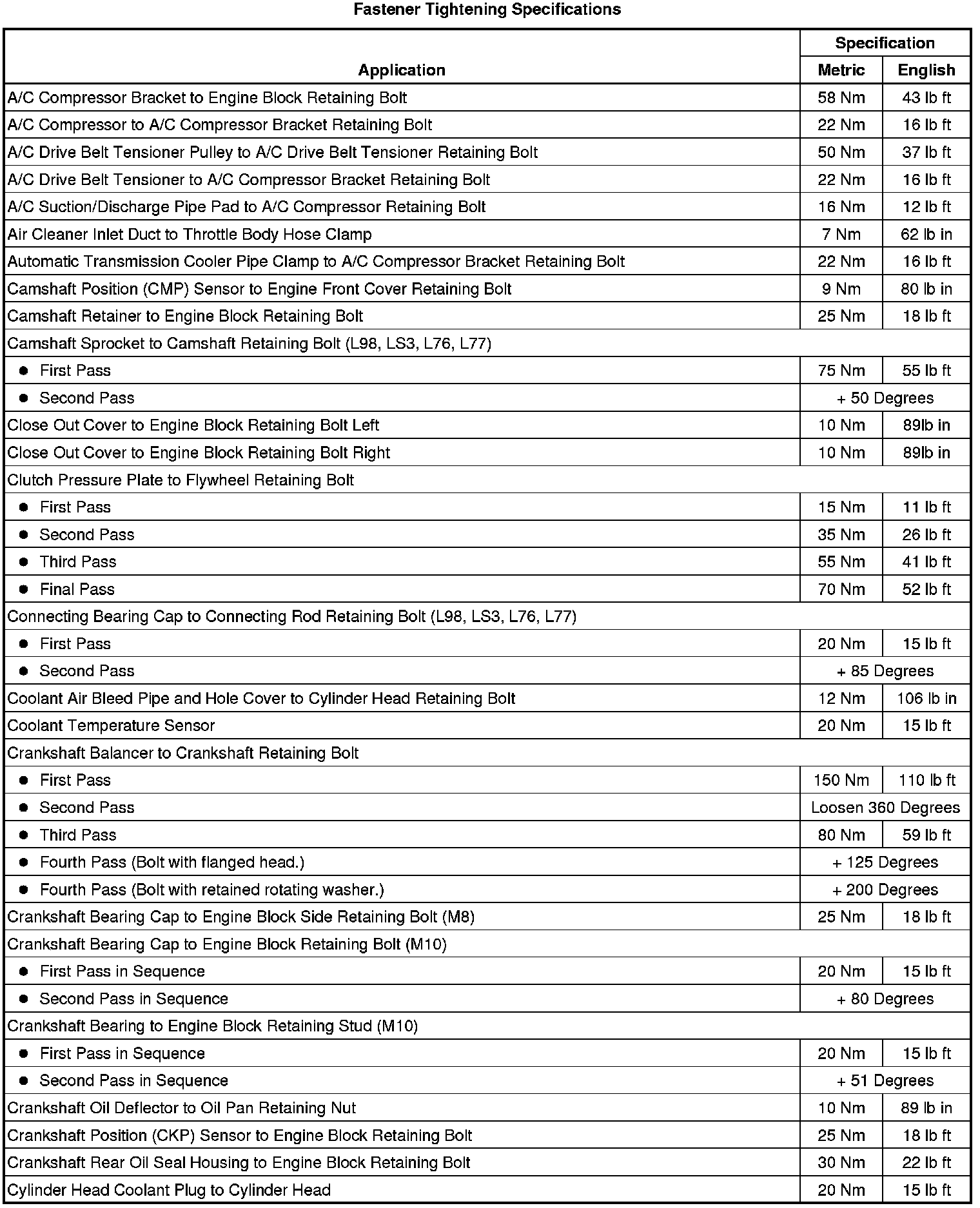 Fastener Tightening Specifications