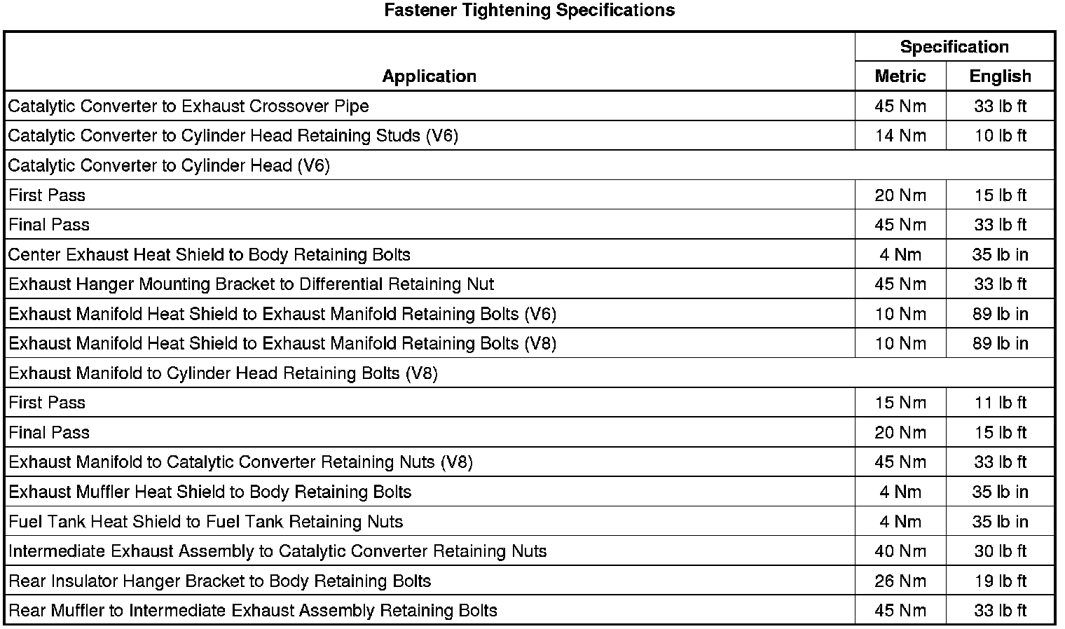 Fastener Tightening Specifications