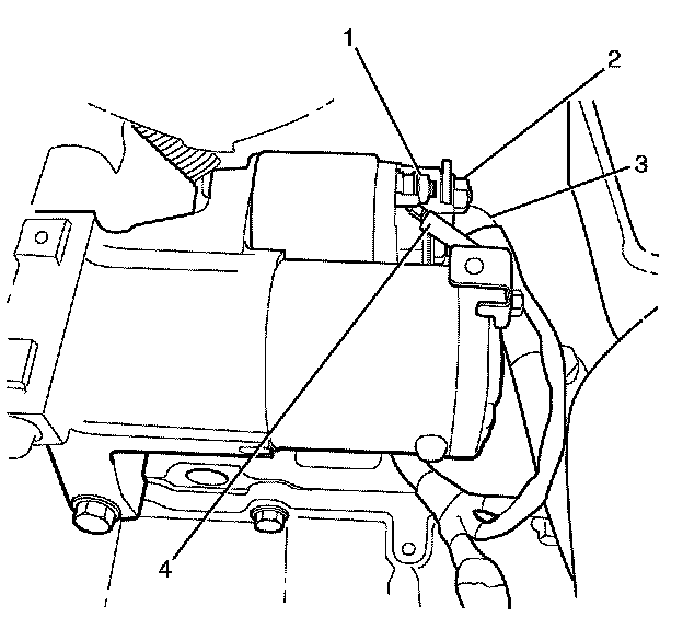 3. Install the engine wiring harness lead terminal (4) to the starter motor.
