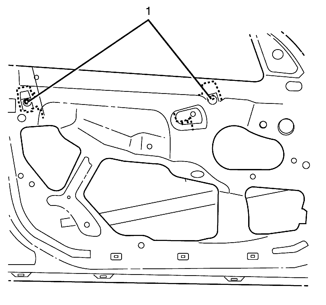 2. Remove the door water deflector. Refer to Front Side Door Water Deflector Replacement Front Side Door Water Deflector Replacement or Rear Side Door Water Deflector Replacement Rear Side Door Water Deflector Replacement.