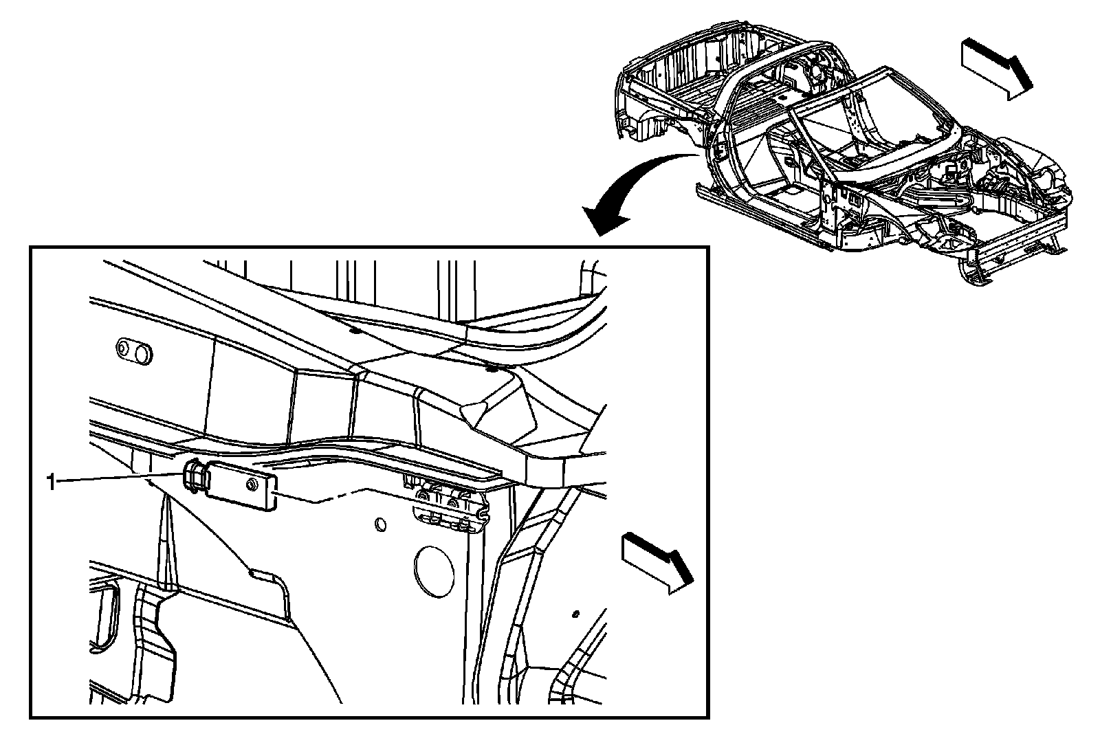 2. Remove the rear wheel liner (passenger side). Refer to Rear Wheelhouse Panel Liner Replacement .