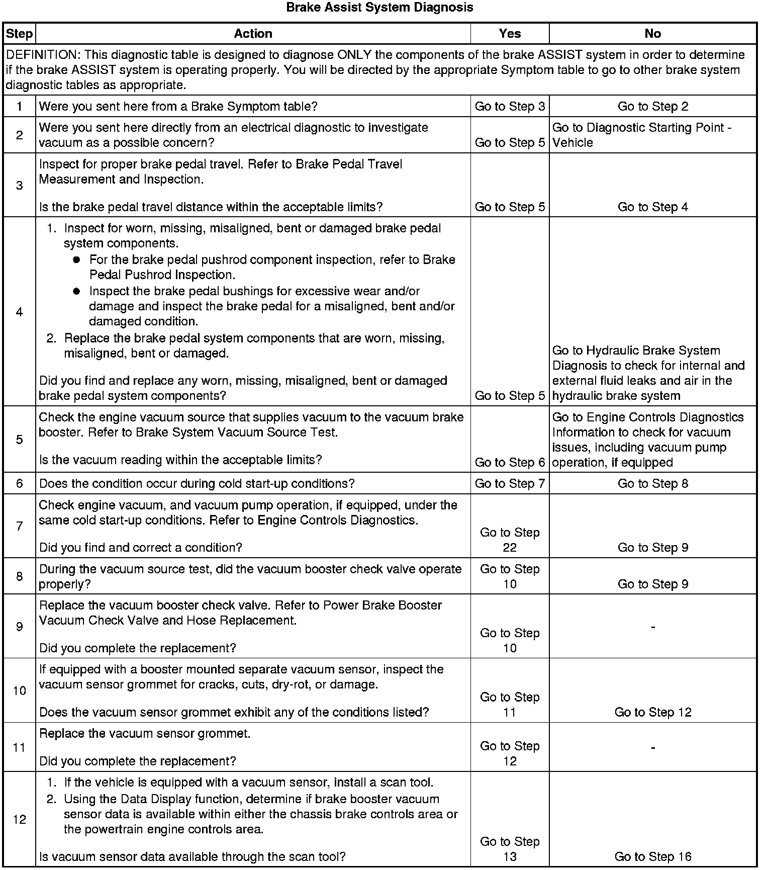 Brake Assist System Diagnosis