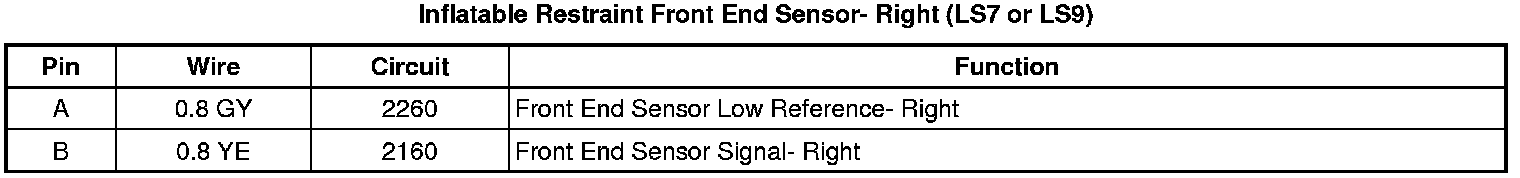 Inflatable Restraint Front End Sensor- Right (LS7 or LS9)