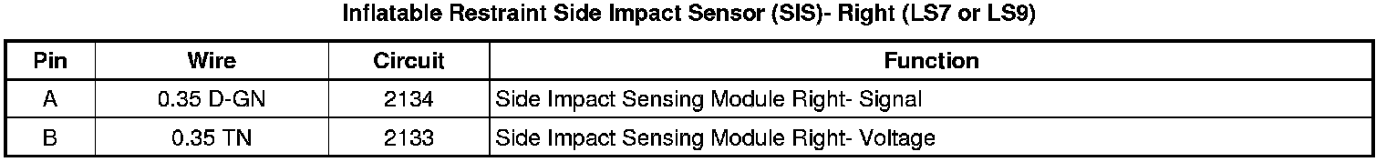 Inflatable Restraint Side Impact Sensor (SIS)- Right (LS7 or LS9)