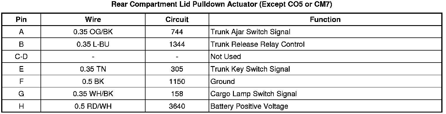 Rear Compartment Lid Pulldown Actuator (Except CO5 or CM7)