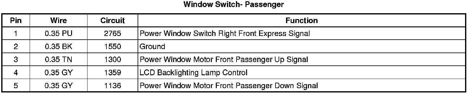 Window Switch - Passenger