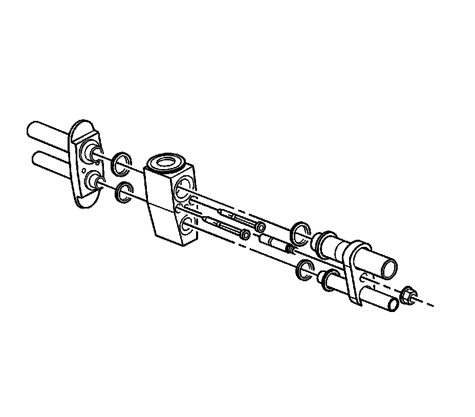 2. Remove the rear evaporator line assembly. Refer to Air Conditioning Evaporator Rear Tube Replacement Air Conditioning Evaporator Rear Tube Replacement.
