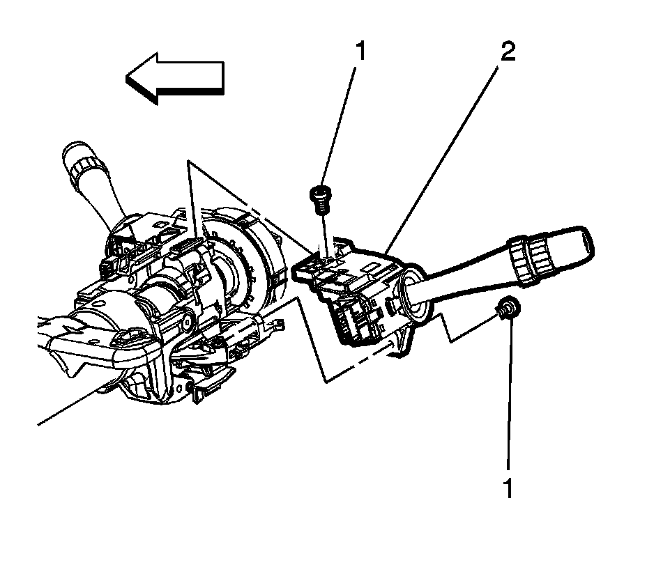 6. Remove the turn signal and headlamp dimmer switch assembly (2).