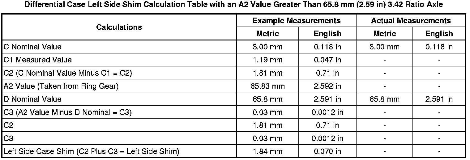 Spacer and Shim Specifications (Z06)