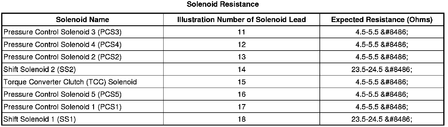 3. Check the resistance of the solenoids at room temperature and verify with the following table. If the resistance is not within the expected range, carefully inspect the solenoid contact leads.