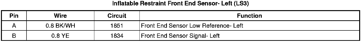Inflatable Restraint Front End Sensor- Left (LS3)