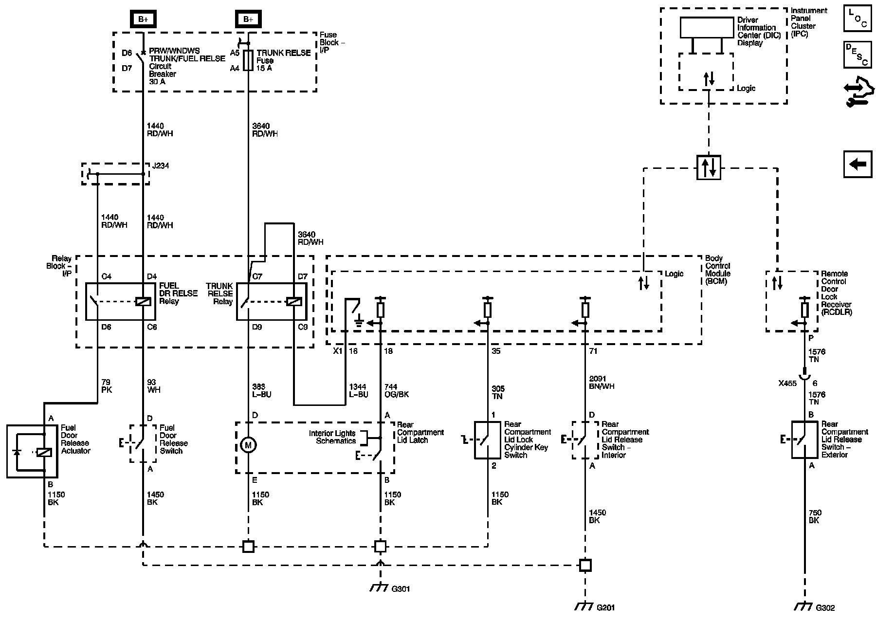 AUX PWR, LTR, and TRUNK RELSE Fuses