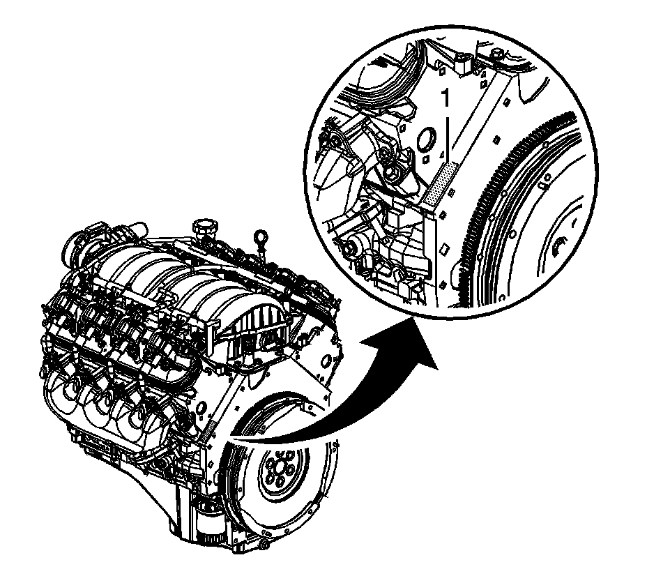 The vehicle identification number (VIN) is located on the left side rear of the engine block (1) and is typically a 9 digit number stamped or laser-etched onto the engine at the vehicle assembly plant.