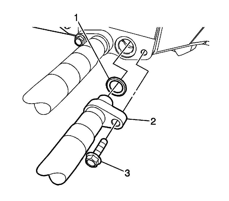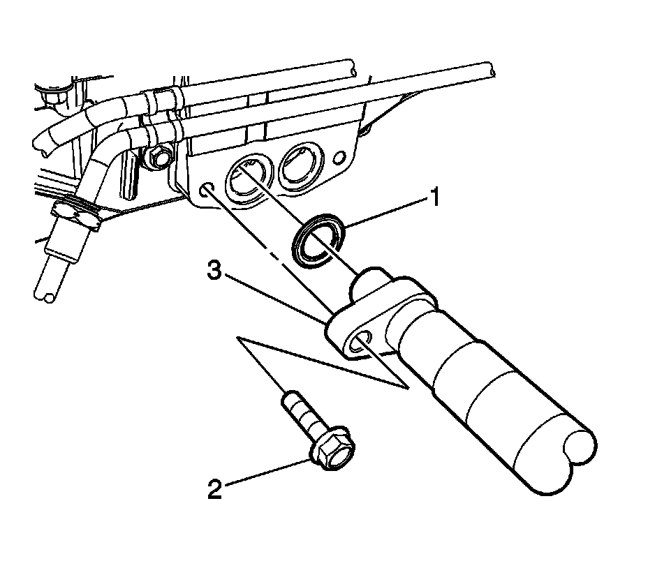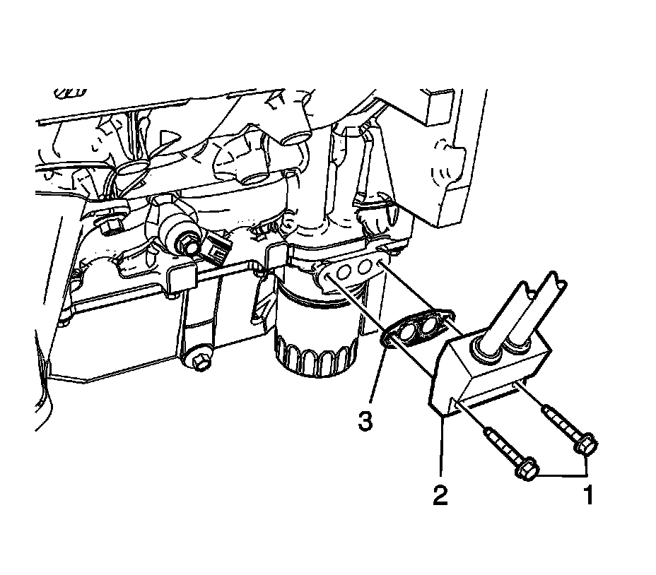 22. On 7.0L engine, remove the oil inlet hose to oil pan bolt (3) and disconnect the hose (2) from the oil pan.