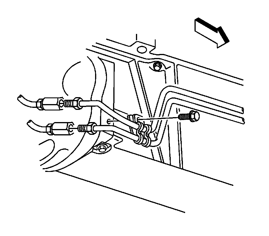 75. Install the rear transmission cooler lines retainer and bolt and tighten to 12 Nm (106 lb in).