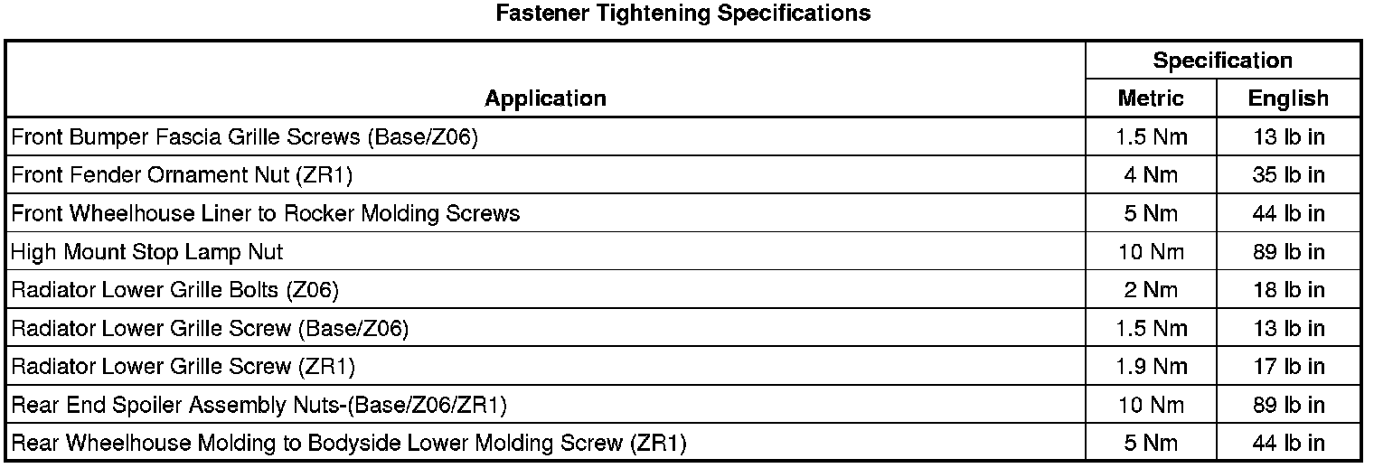 Fastener Tightening Specifications