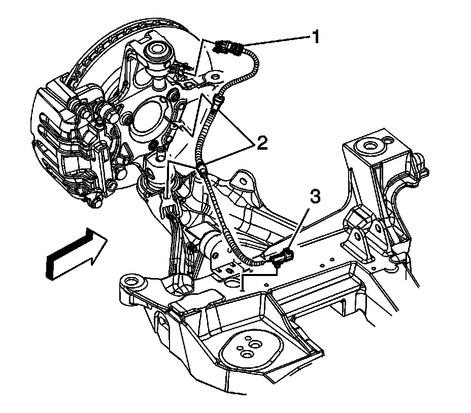 20.Disconnect the wheel speed sensor wiring harness (3) from the crossmember.
