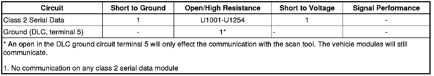 1. Attempt to communicate with all control modules on the Class 2 serial data circuit, refer to Data Link References Initial Inspection and Diagnostic Overview. Communications should not be available with any control module on the Class 2 serial data circuit.