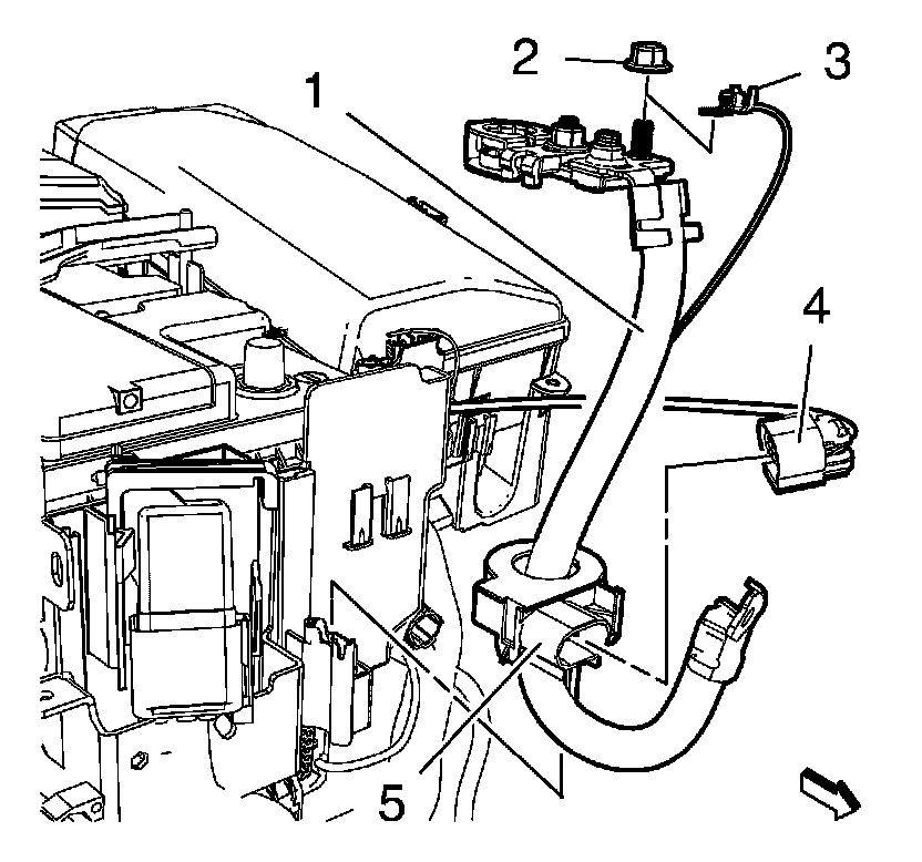 4. Remove the battery negative cable (2).