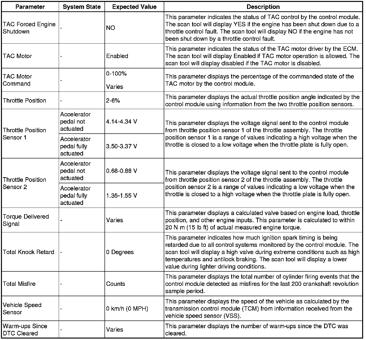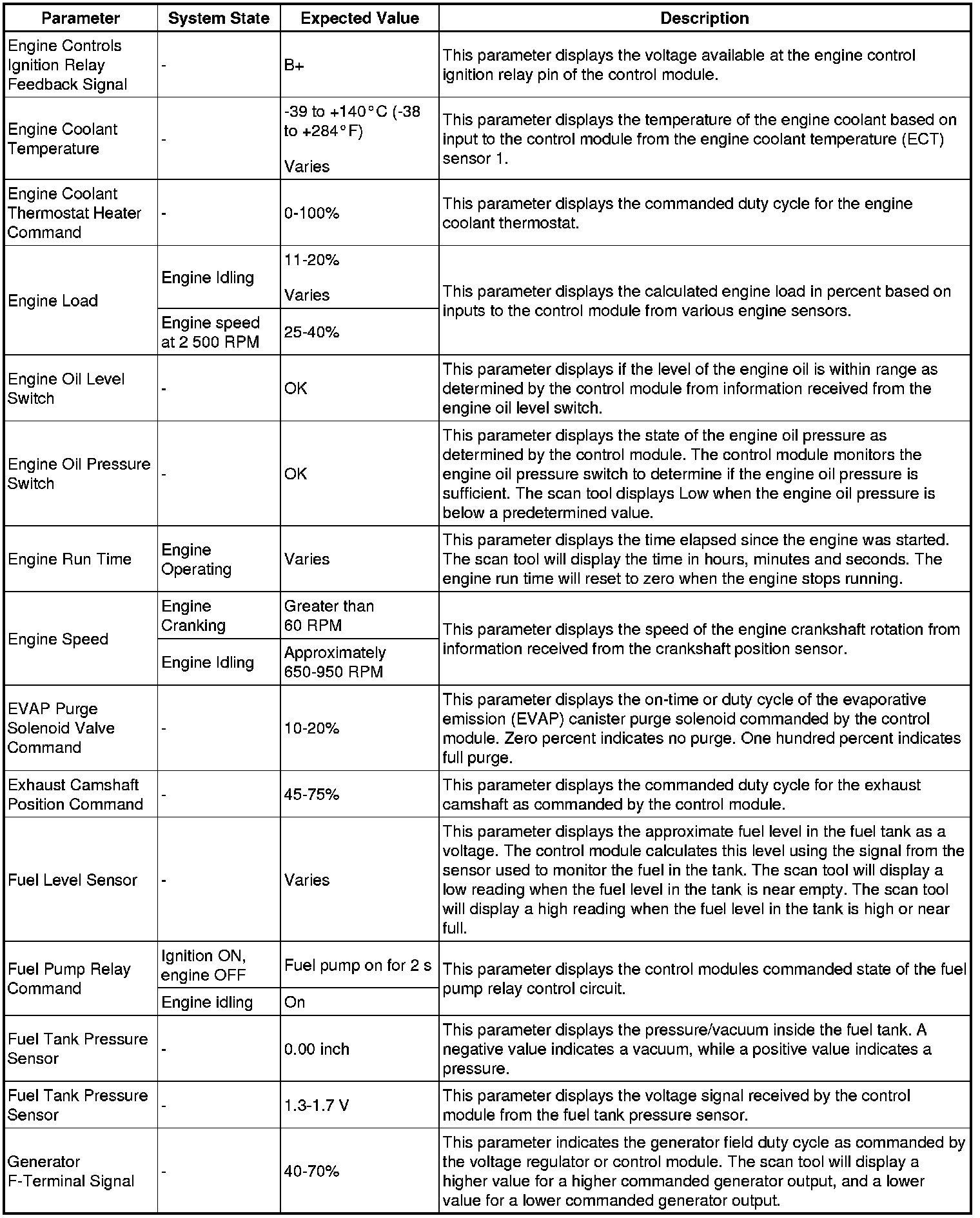 The Engine Control Module Scan Tool Data List contains all engine related parameters that are available on the scan tool. The list is arranged in alphabetical order. A given parameter may appear in any one of the data lists, and in some cases may appear more than once, or in more than one data list in order to group certain related parameters together.
