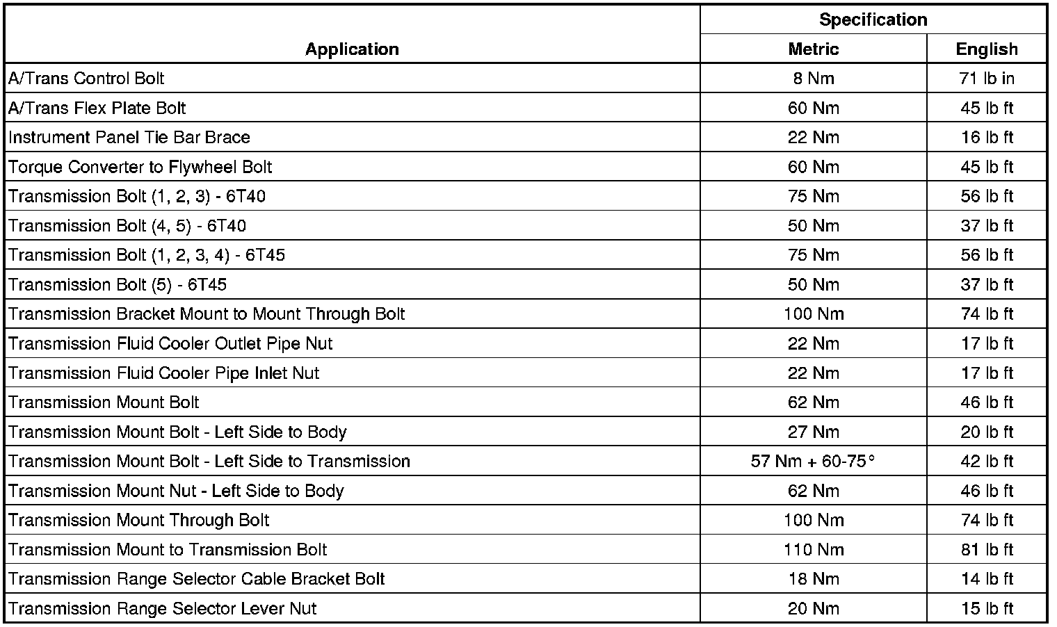 Fastener Tightening Specifications (On Vehicle 6T40/45)