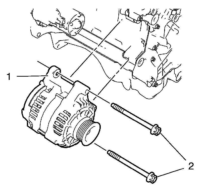 2. Install the 2 generator bolts (2) and tighten to 35 Nm (26 lb ft).