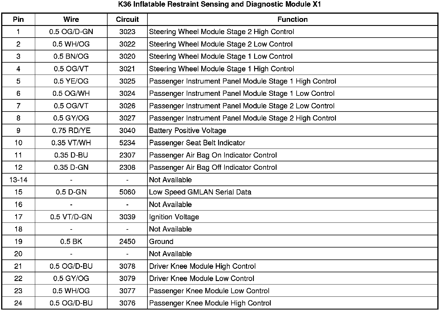 K36 Inflatable Restraint Sensing and Diagnostic Module X1