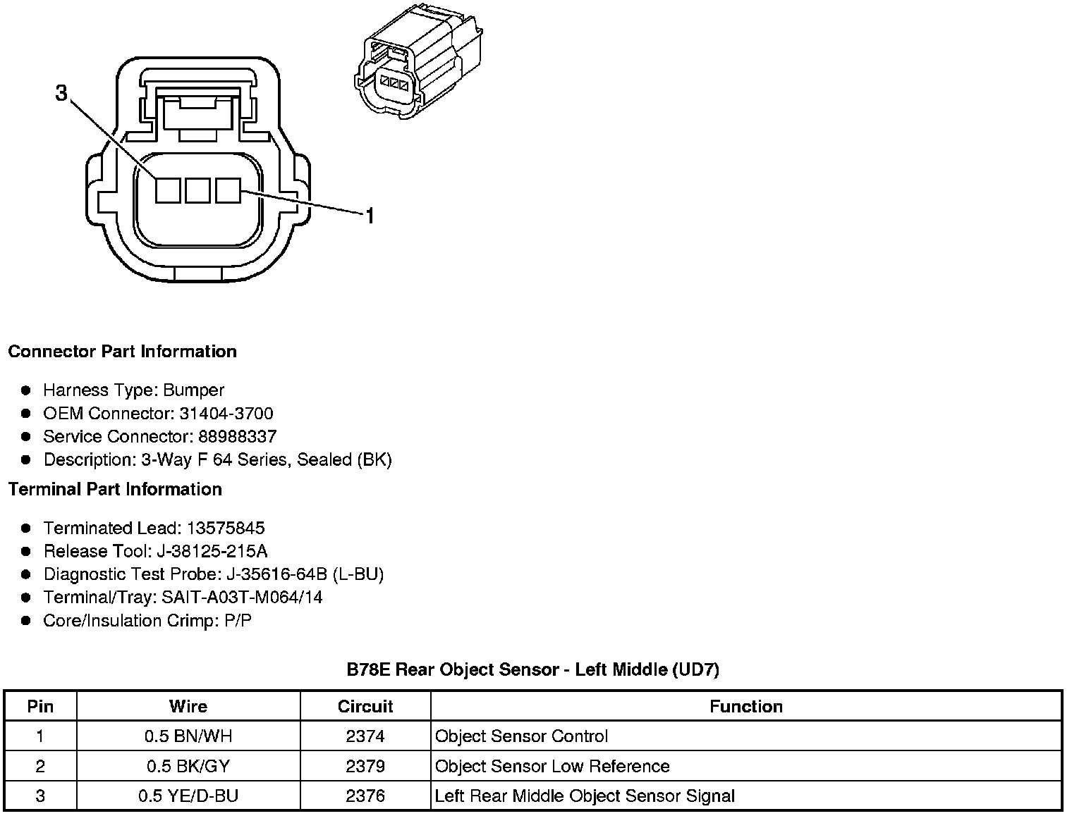 B78E Rear Object Sensor - Left Middle (UD7)