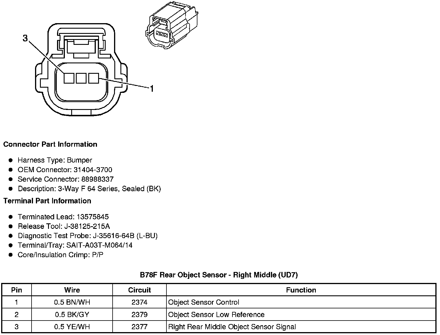 Rear Object Sensor - Right Middle (UD7)