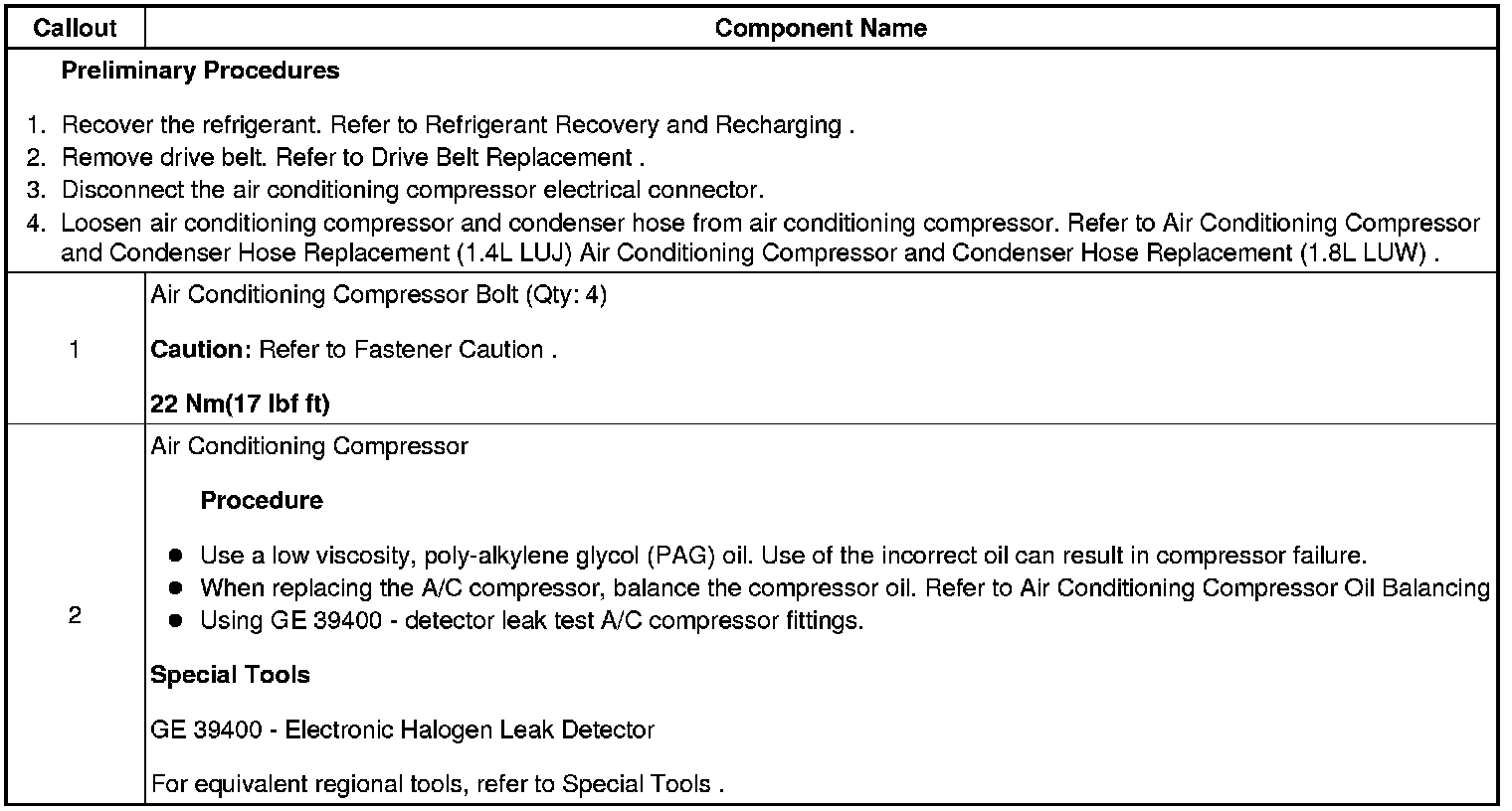 Air Conditioning Compressor Replacement (1.8L LUW)