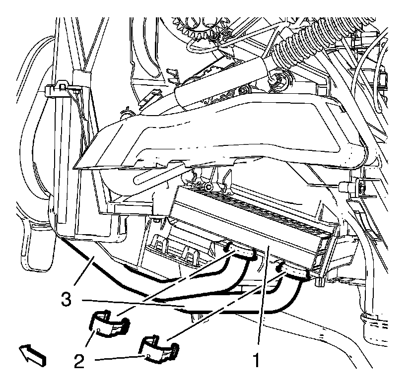 7. Remove the 2 heater core tubes (3).