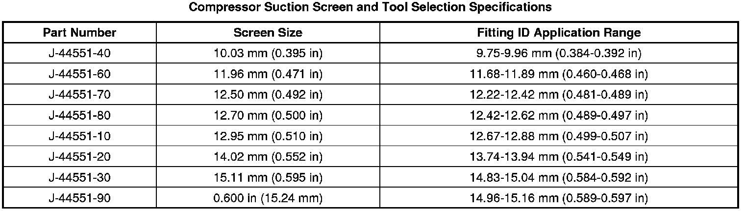 Compressor Suction Screen and Tool Selection Specifications