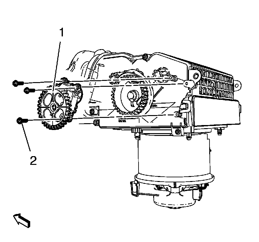 2. Disconnect electrical connector and remove 3 mode control cam actuator screws (2) and remove mode control cam actuator (1).