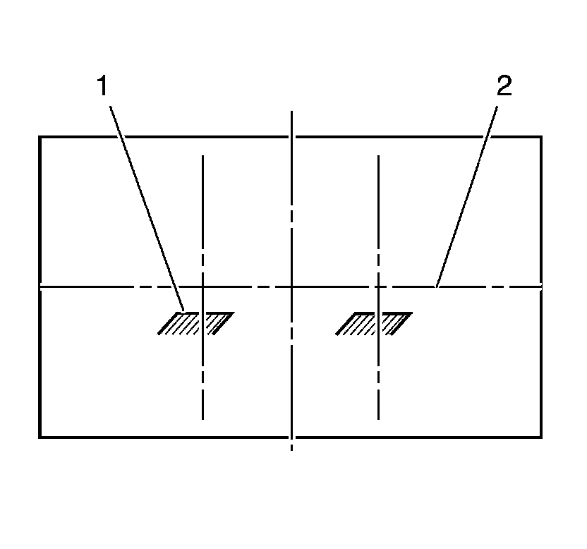 2. Measure from the center of the fog lamp to the ground line. Using this measurement, mark the horizontal centerline (2) of the fog lamp on the target screen directly in front of the vehicle.