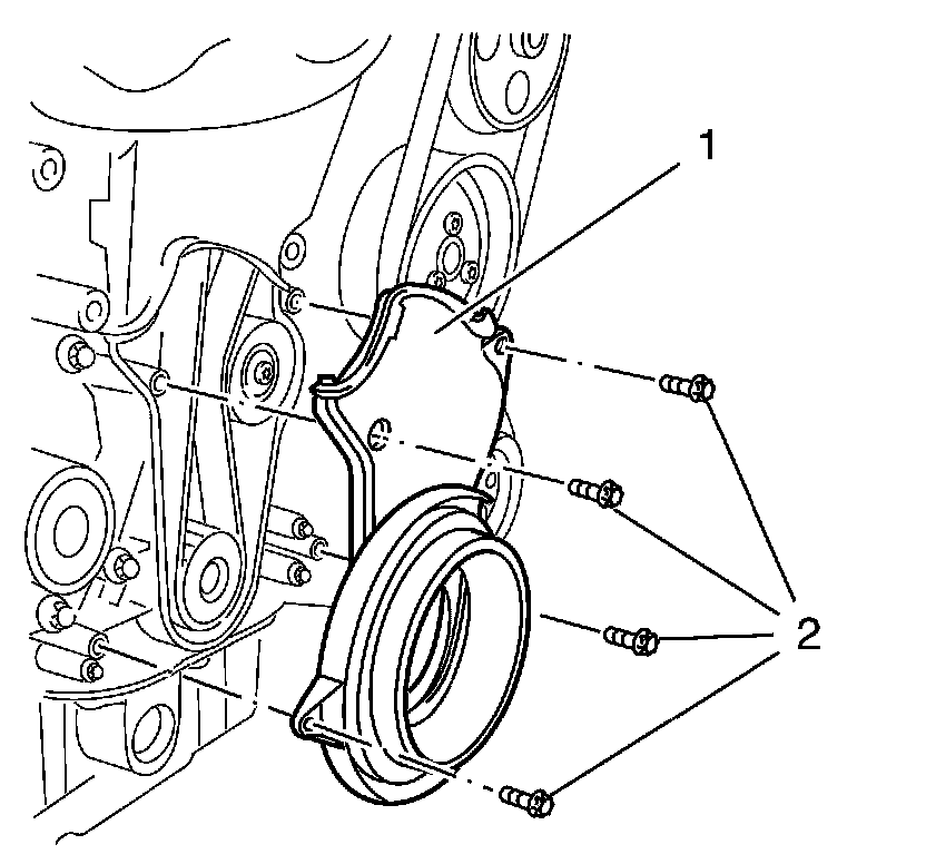 15. Remove the 4 lower timing belt cover bolts (2).