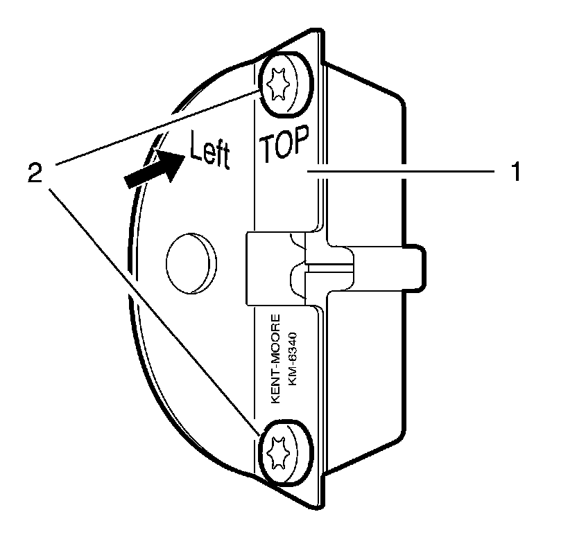2. Install EN-6340-left - locking tool (1) into the camshaft adjusters as shown.