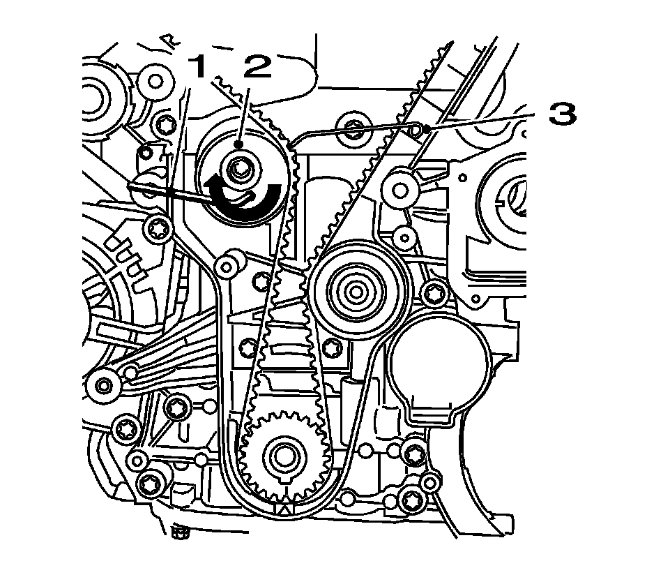 11. Release tension on timing belt tensioner.